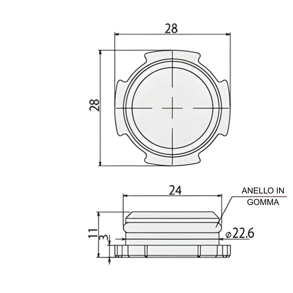Aluminum cap, a practical and effective solution for closing profiles, with a rubber ring to hold the cap in place.Even with repeated use, tear resistance is less likely to decrease, ensuring stable performance. Combining functionality and aesthetics with reduced environmental impact thanks to its recyclable material.Compatible with the GF-N profile.