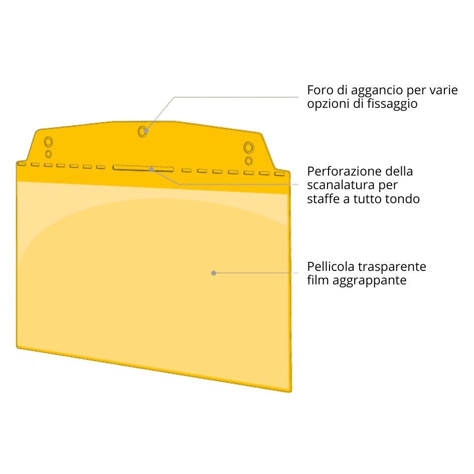 Hanging document holder made of resistant PVC plastic and transparent front. Equipped with 5 holes and horizontal slot to offer various hanging possibilities using the many accessories available. ESD version available.