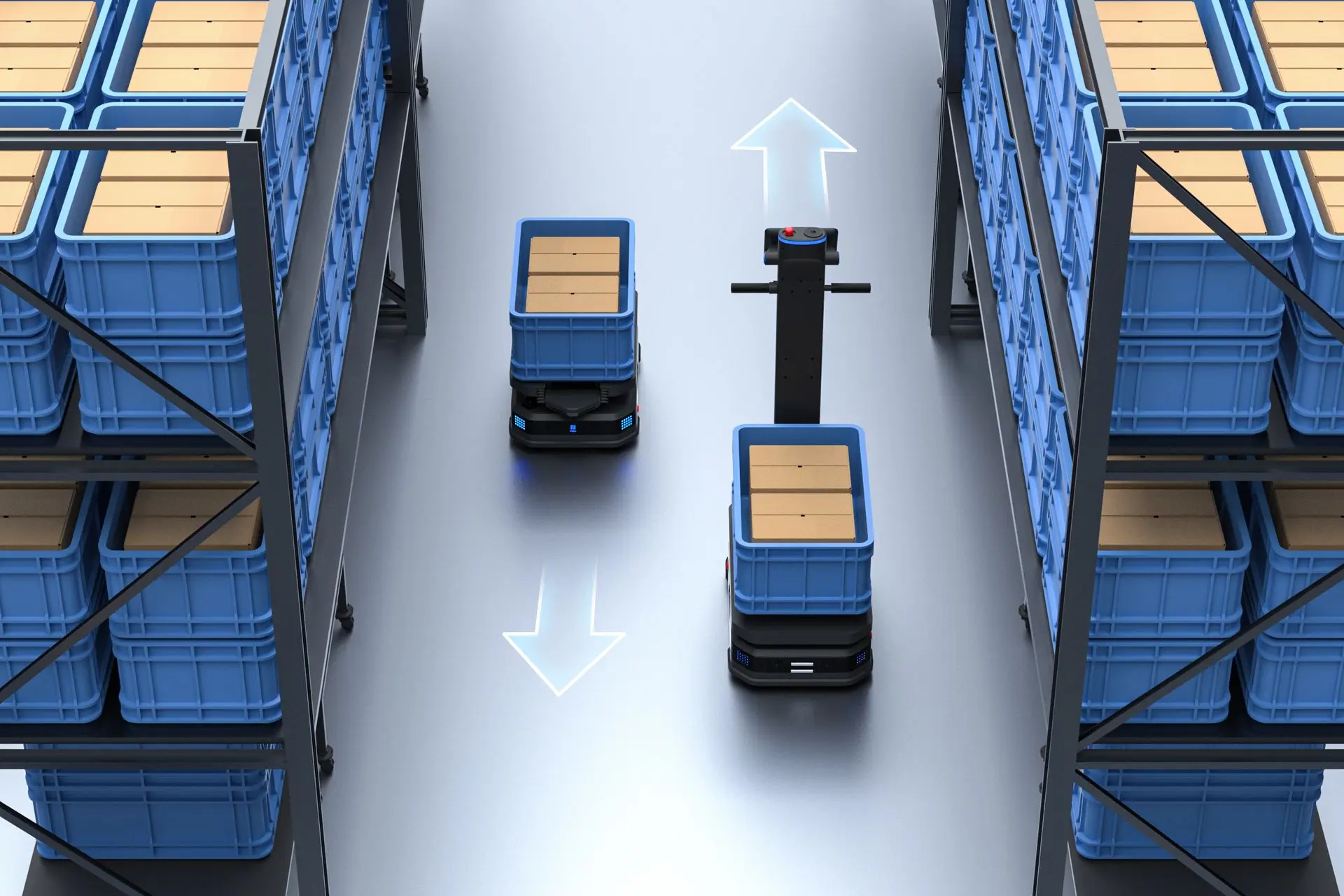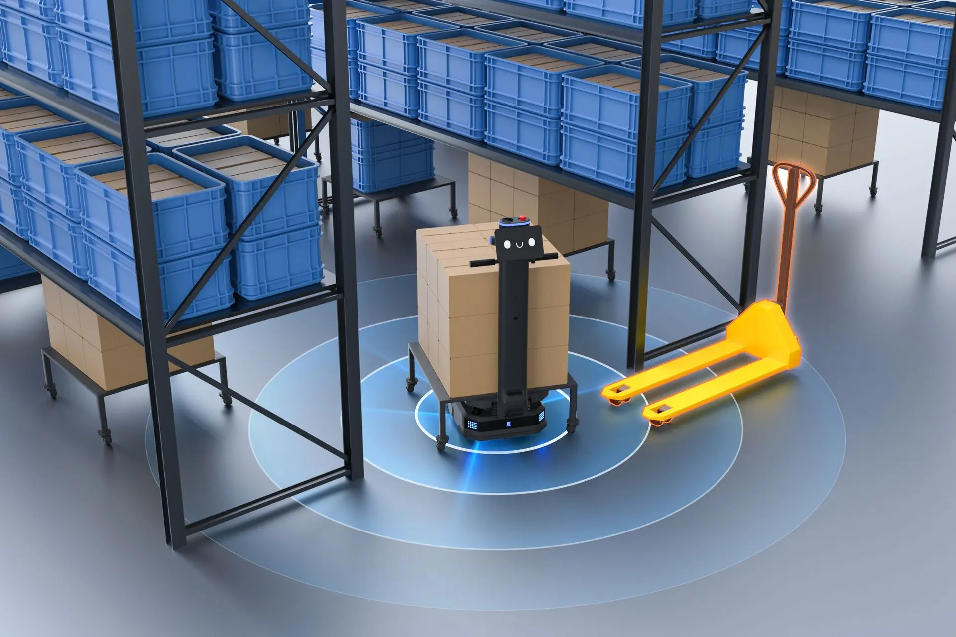 Navigazione intelligente e pick-and-place autonomo per flussi di lavoro non presidiati, garantendo un magazzino efficiente e affidabile
