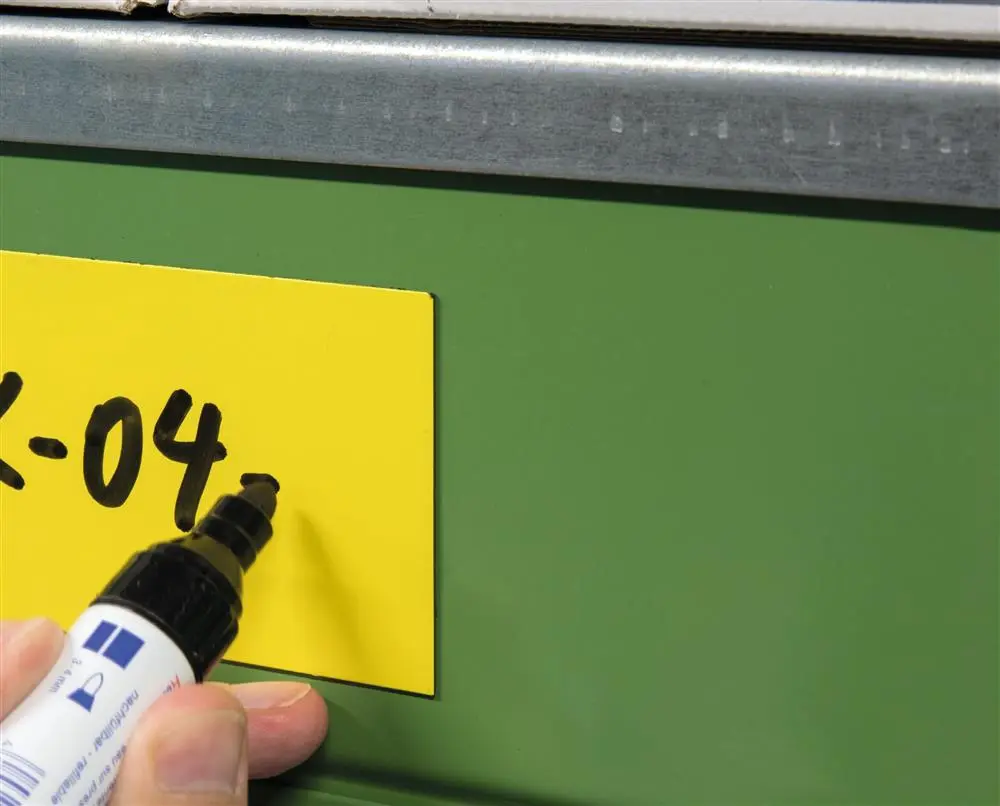 Etichette realizzate in film magnetico, pre-tagliate, scrivibili e riscrivibili con pennarelli a base d'acqua. L’identificazione in magazzino è sempre aggiornata, ordinata e chiara. Cinque differenti colori per creare ulteriori distinzioni, a prima vista. Valida alternativa a porta etichette che prevedono l'utilizzo di un cartoncino. Adatte anche ad ambienti esterni.