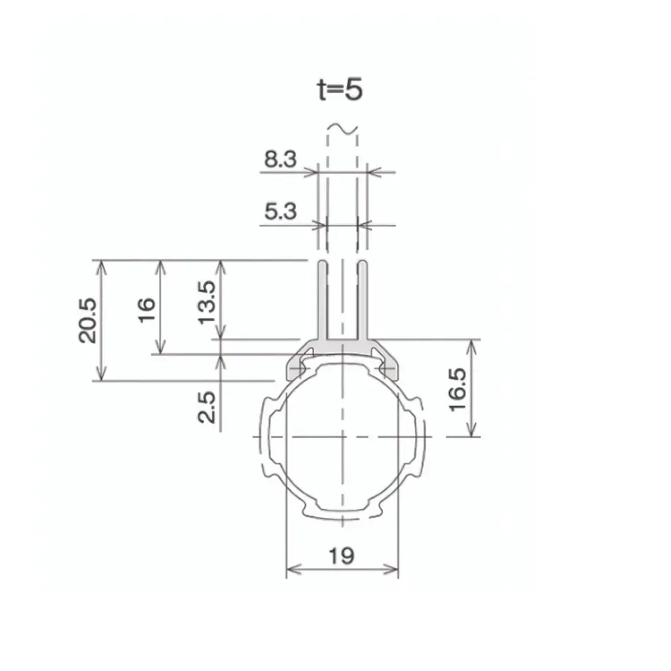 Guida in materiale plastico con fissaggio su profilo in alluminio diametro 28 mm. Questo prodotto renderà semplice il fissaggio per pannelli di spessore 5 mm.