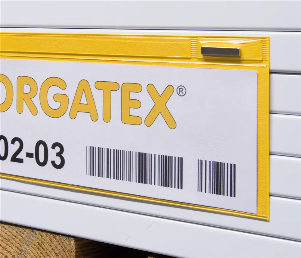 Kan-label in plastica colorata, apertura laterale, con 2 magneti Neodym permette il veloce recupero dalla lavagna kanban e la sovrapposizione degli stessi.