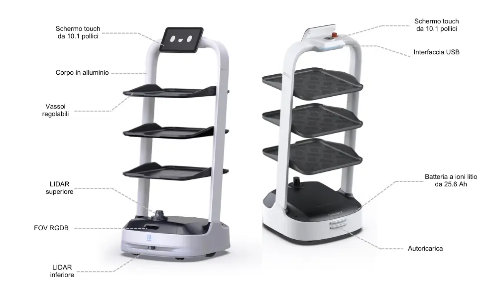 Il PuduBot 2 è un robot avanzato progettato per assistere gli operatori nelle attività di picking e delivery, riducendo il carico di lavoro manuale e migliorando l'efficienza operativa. Grazie alla sua navigazione autonoma, si muove agilmente tra le postazioni, rendendo il processo di picking fluido e senza sforzo, garantisce operazioni efficienti e riduce i tempi di inattività. Capace di gestire grandi volumi di lavoro, offrendo un supporto continuo agli operatori. Il suo design compatto e la tecnologia avanzata lo rendono ideale per operare in spazi ristretti senza compromettere la funzionalità