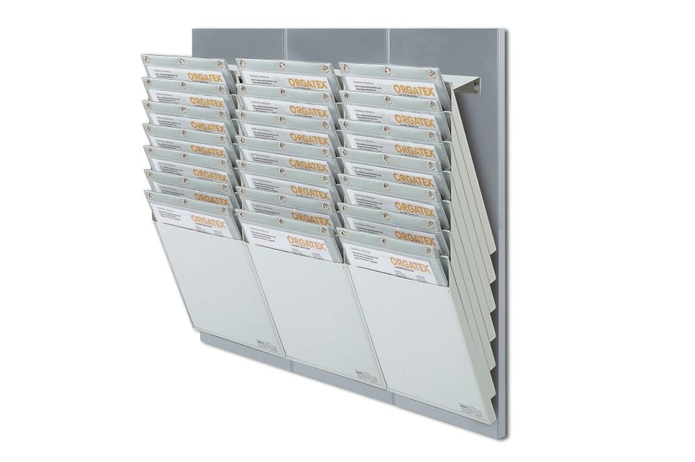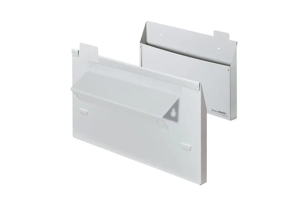 Cassetta posta Kanban in lamiera verniciata, magnetica o con fori di fissaggio a muro, con finestra trasparente o grigia. Ideale per la raccolta dei cartellini Kanban prima e dopo l'utilizzo. Disponibile anche versione aggiuntiva, senza finestra. Capacità di riempimento di 15 mm.