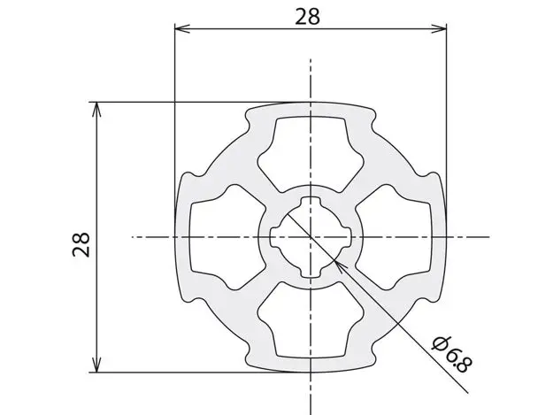Il profilo in alluminio Green Frame T (GFF-017) è una variante ad alte prestazioni progettata per applicazioni che richiedono maggiore rigidità strutturale. La sua caratteristica distintiva è un incremento del 50% della forza flessionale rispetto al profilo standard, unito alla possibilità di effettuare filettature (tapping) direttamente sulle estremità per il montaggio di piedini regolabili o golfari, rendendolo la scelta ideale per basi di carrelli o strutture sottoposte a carichi gravosi.